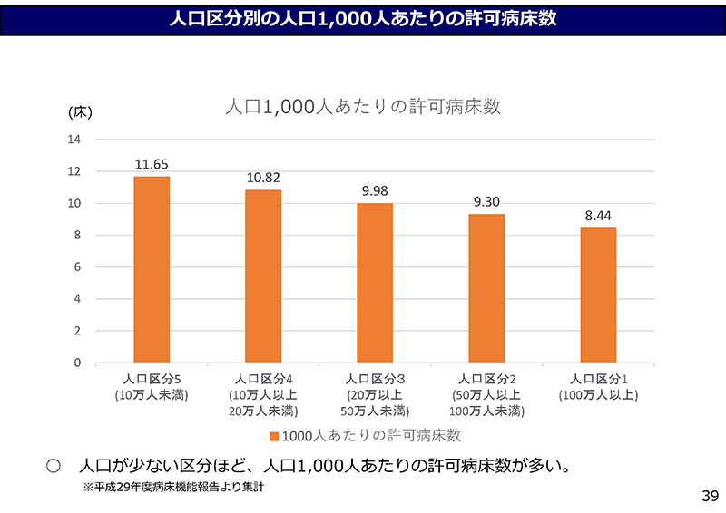 39ページ、既にですね、「人口1,000人あたりの許可病床数」を見ますと、人口区分の4・5で大きくなっておりまして、